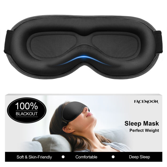 FACEMOON High-performance 3D Weighted Sleep Mask – 100% Blackout Eye Mask for Sleeping, Travel, and Stress Relief. Experience unmatched sleep comfort with this eye mask for sleeping, crafted for light sleepers, travelers, and anyone seeking deep, restful sleep. Its 100% blackout technology ensures total darkness, while gentle weighted pressure relieves stress and enhances relaxation. The zero-pressure 3D design with spacious eye pockets offers supreme comfort, ideal for naps, overnight rest, or side sleepers. Adjustable straps fit all head sizes, and its lightweight build suits travel or meditation. Clinically proven to boost sleep quality, this sleep eye mask is perfect for light-sensitive adults craving blackout and calm. It’s a thoughtful wellness gift too!