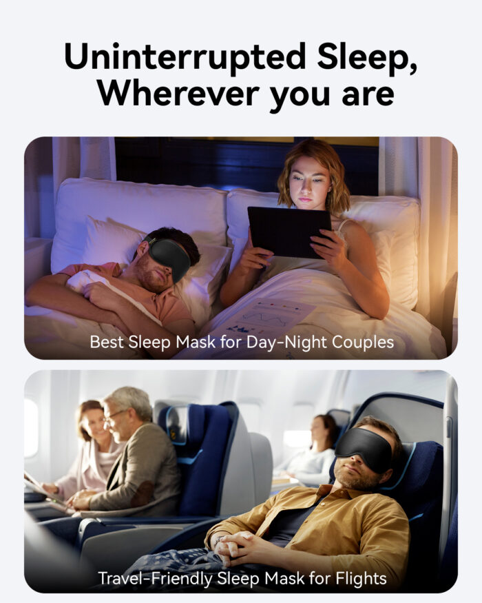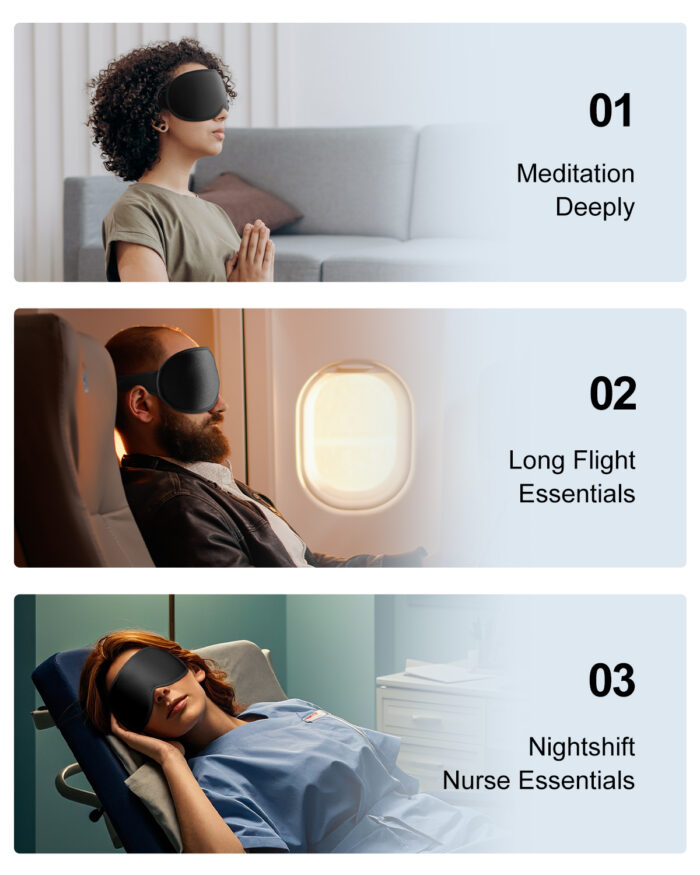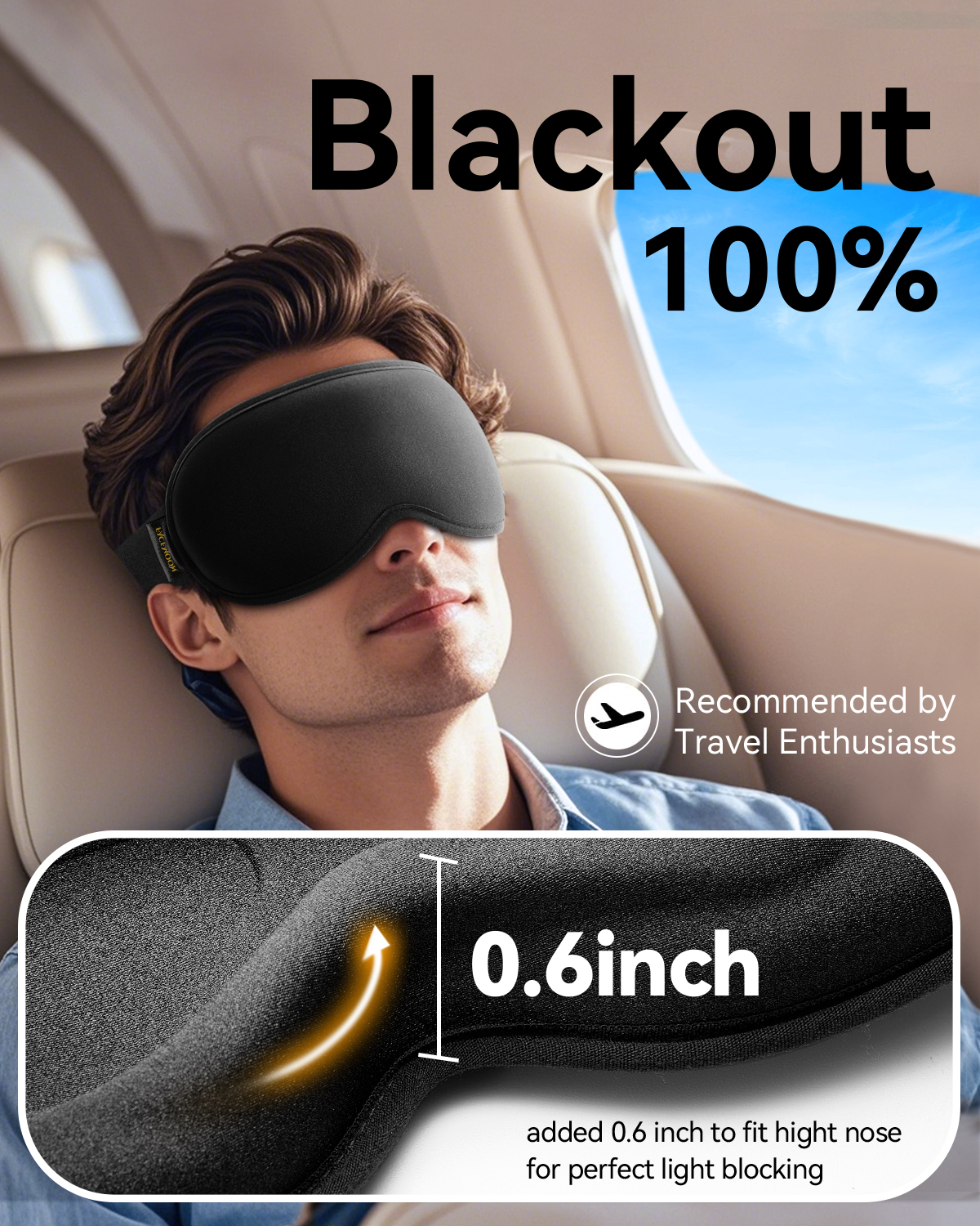 • 𝟭𝟬𝟬% 𝗟𝗶𝗴𝗵𝘁 𝗕𝗹𝗼𝗰𝗸𝗶𝗻𝗴 𝗳𝗼𝗿 𝗕𝗲𝘁𝘁𝗲𝗿 𝗦𝗹𝗲𝗲𝗽: The ergonomic nose bridge contour eliminates light leakage, while matte black fabric neutralizes glare during night shifts or sunlit bedroom recovery.