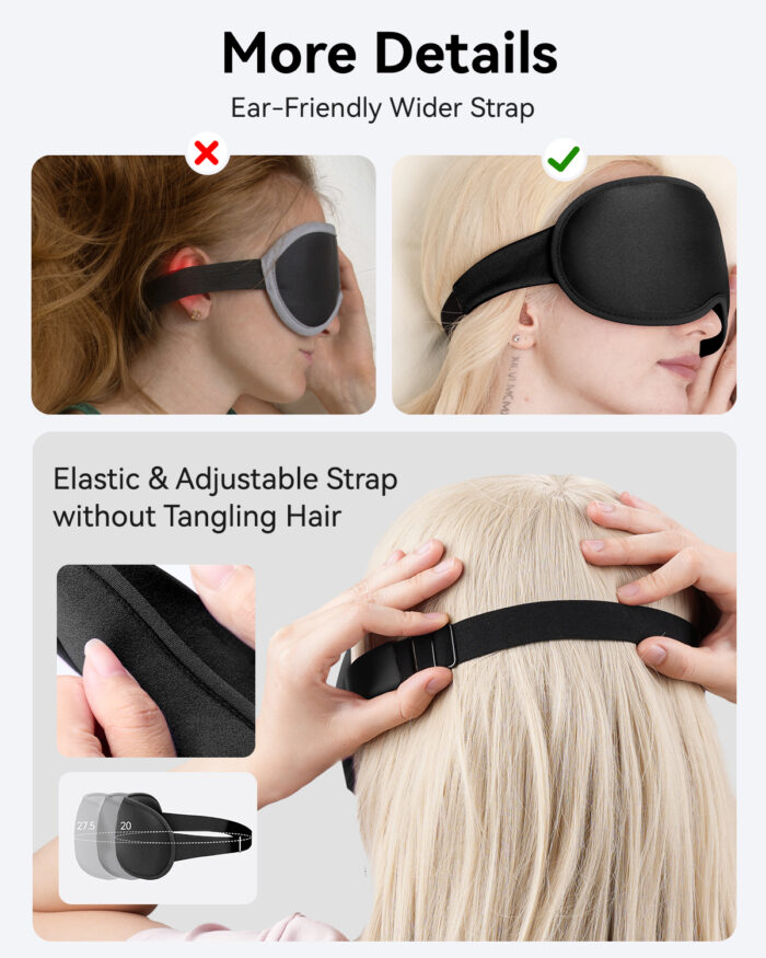 • 𝗔𝗱𝗷𝘂𝘀𝘁𝗮𝗯𝗹𝗲 𝗦𝘁𝗿𝗮𝗽 𝗙𝗶𝘁𝘀 𝗔𝗹𝗹 𝗛𝗲𝗮𝗱 𝗦𝗶𝘇𝗲𝘀: The flexible, adjustable strap ensures a snug and comfortable fit for all head sizes, making it ideal for both men and teens. It stays in place even during long road trips or naps at home, ensuring your sleep remains undisturbed.