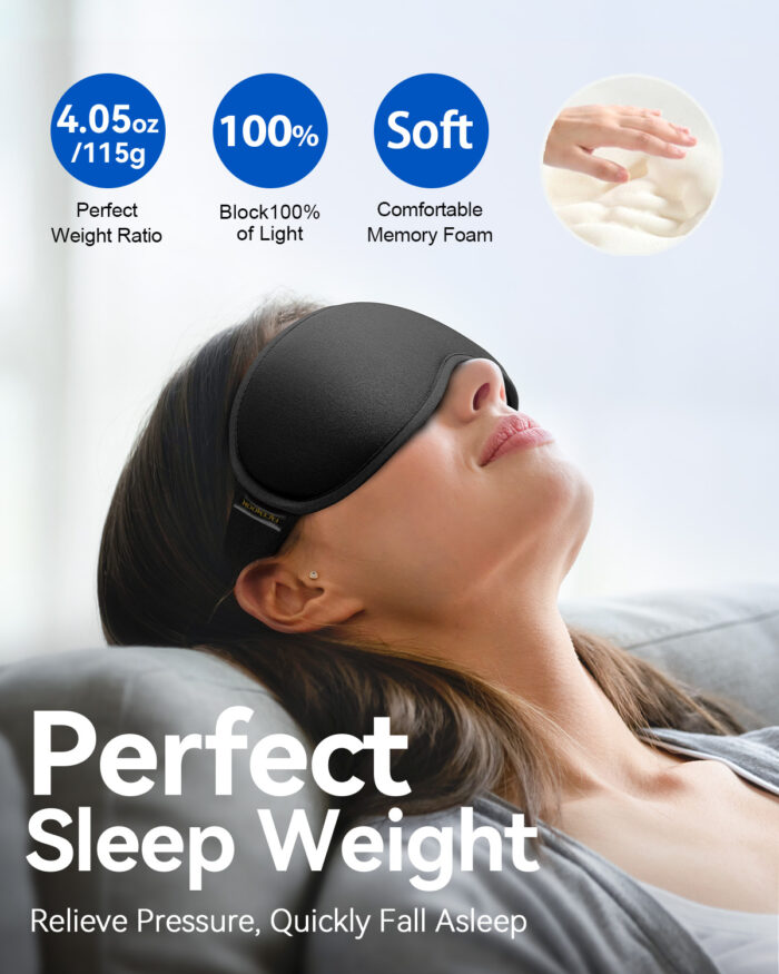 3D Weighted Eye Mask | Memory Foam Sleep Mask for Women & Men | 100% Blackout | Adjustable Straps | Travel Essentials