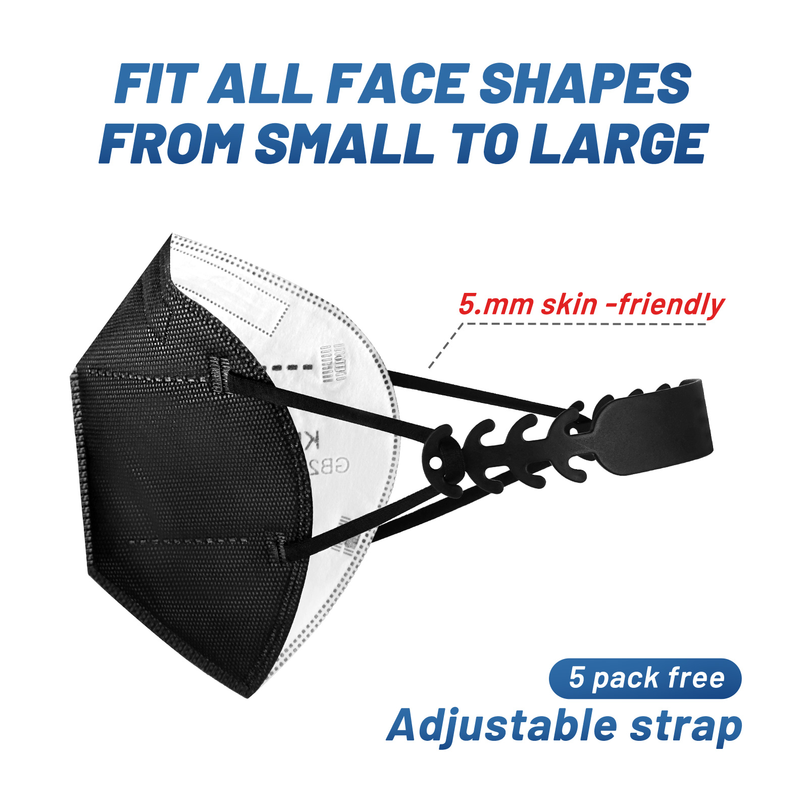 • CUSTOMIZABLE COMFORT FOR EVERYONE: We understand that finding the right fit is a common issue with KN95 masks. Based on a survey involving 100,000 individuals, we found that 35% struggle with sizing. That’s why our FACEMOON KN95 masks are designed with five adjustable clips, each offering four settings on both sides, ensuring a perfect fit for every face shape. This not only enhances comfort but also significantly reduces ear pressure caused by traditional ear loops.