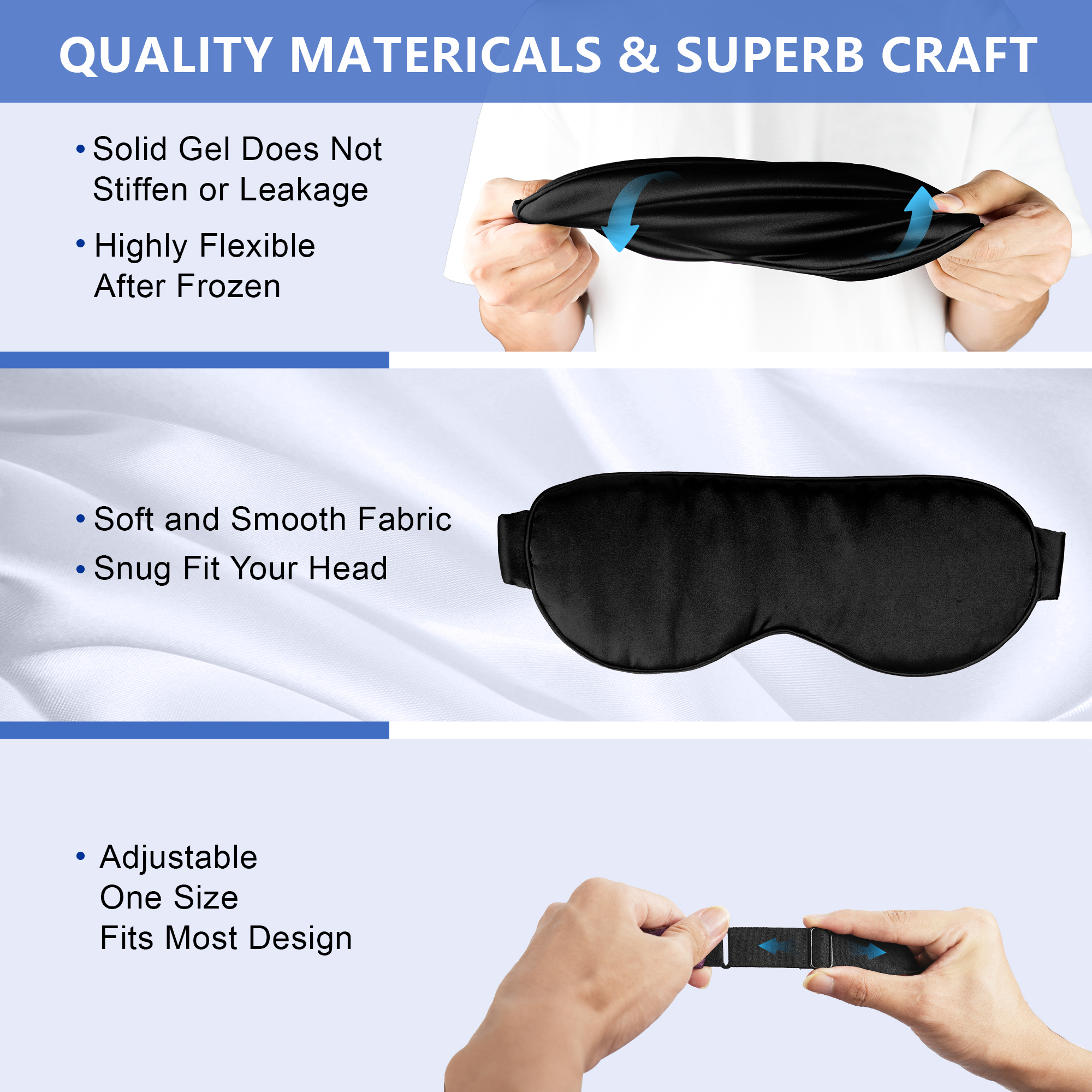 Cooling Eye Mask 2 Packs – Reusable Gel Ice Pack for Dark Circles, Swelling Relief Adjustable Band (Black Blue)