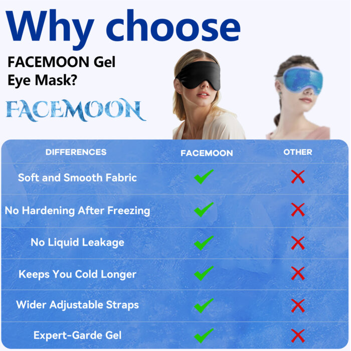 • Soft, Flexible, Long-lasting Cooling Relief: Tired of eye masks that freeze or leak after use? FACEMOON innovative ice eye mask stays soft and flexible even after hours in the fridge, ensuring a comfortable fit with every use. It stays cooler longer and the material is durable and leak-proof, making it ideal for relieving your eye pain. Feel the comfort, experience the relief – your eyes deserve it. Ideal Spa Gifts for Women.