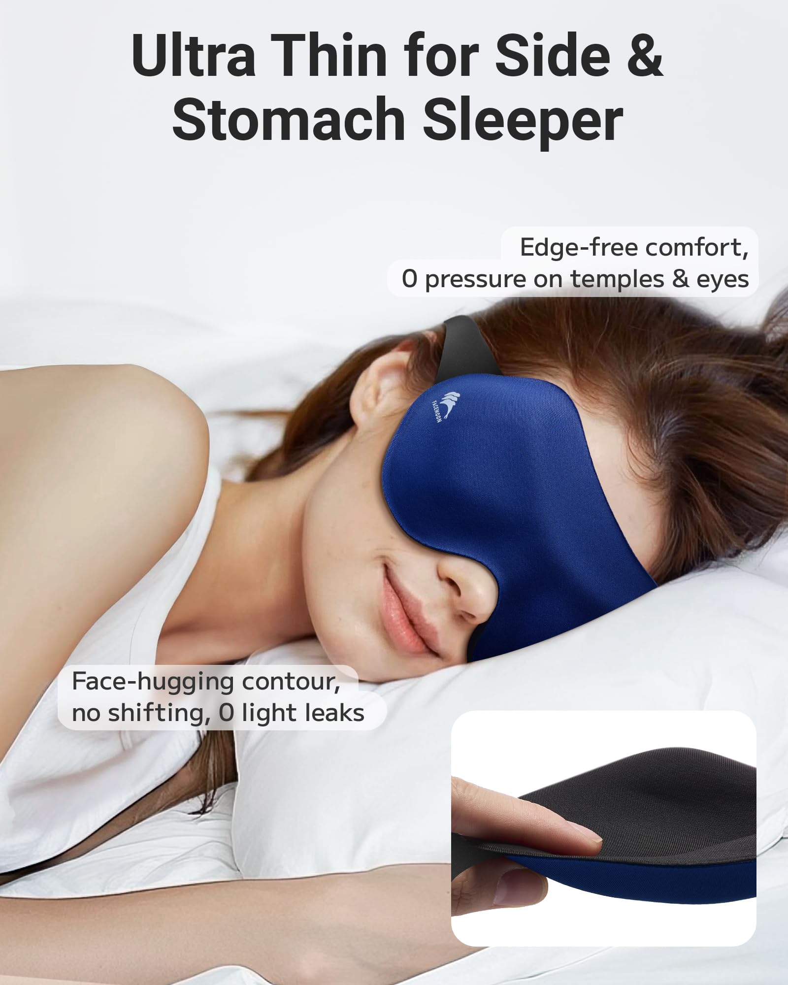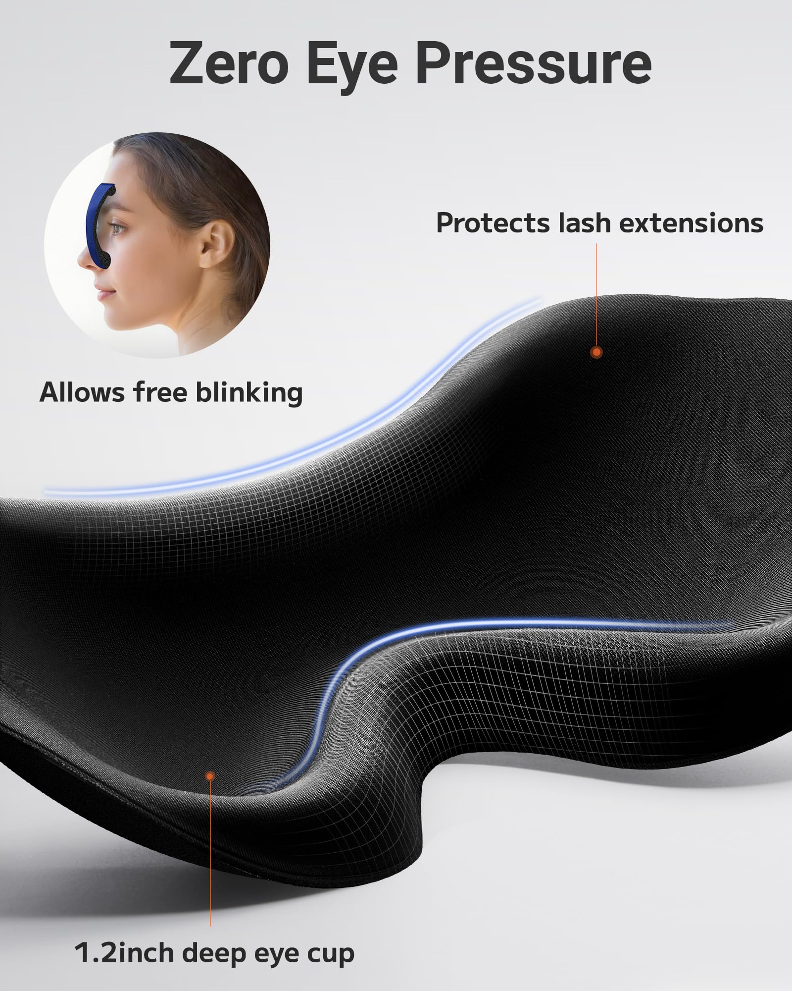 • 𝗭𝗘𝗥𝗢 𝗘𝗬𝗘 𝗣𝗥𝗘𝗦𝗦𝗨𝗥𝗘 𝗪𝗜𝗧𝗛 𝗥𝗢𝗢𝗠 𝗙𝗢𝗥 𝗟𝗔𝗦𝗛𝗘𝗦:The 30mm-deep 3D design offers enough room for your eyes and lashes, providing true zero eye pressure. It prevents your lashes from getting bent and helps keep your makeup intact—making it a top choice in sleep masks for women who want to wake up feeling fresh and beautiful.
