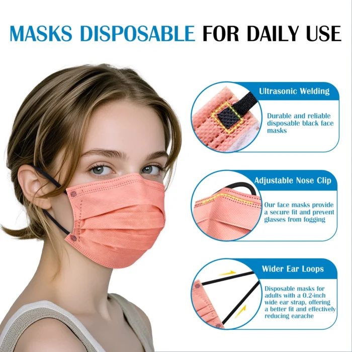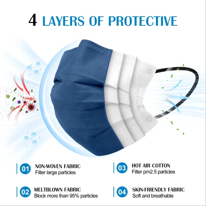 • [Enhanced 4-Layer Protection]: Designed with non-woven fabric, melt-blown filter, hot-air cotton, and protective film, these disposable face masks provide breathable yet efficient filtration for daily use.