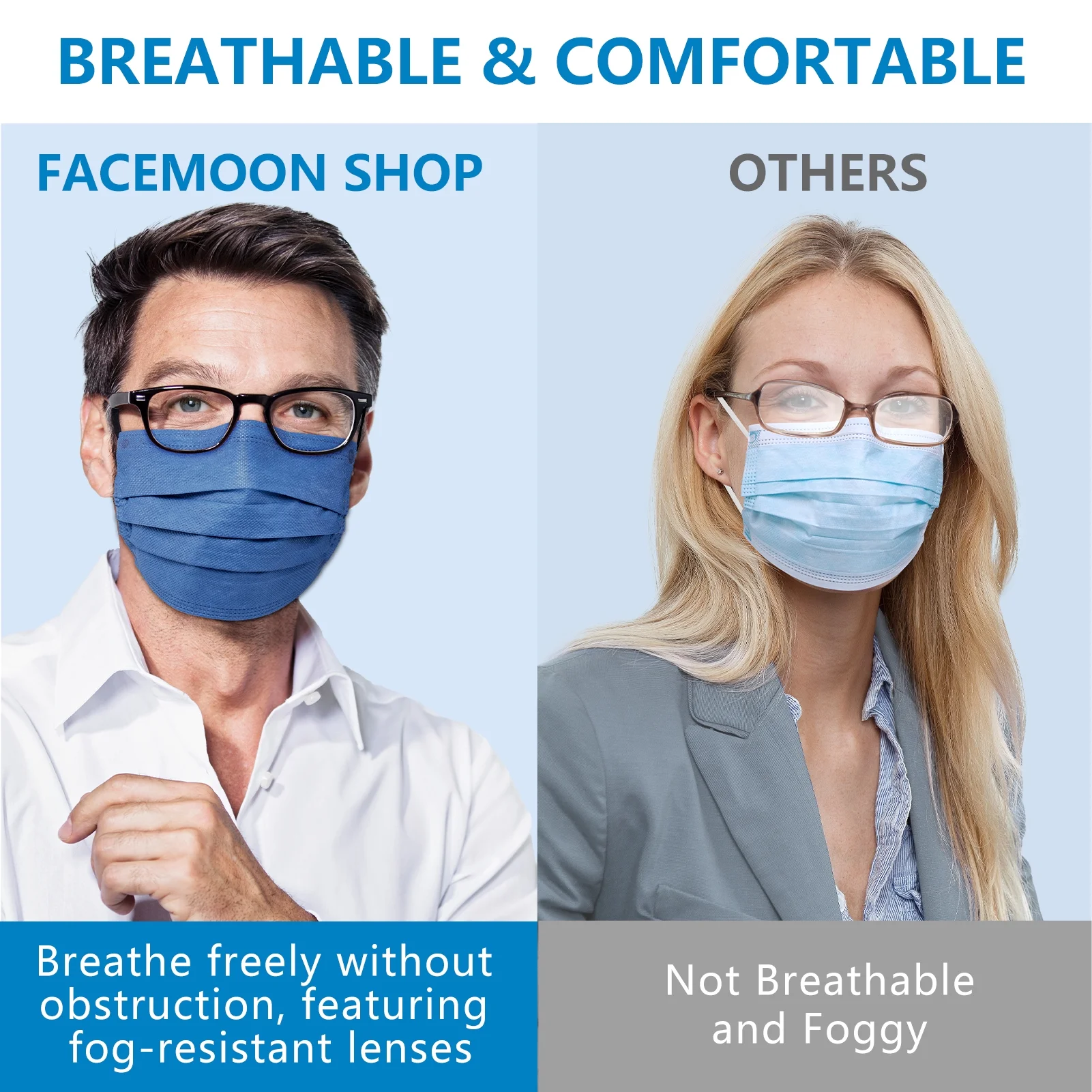 FACEMOON 50 Pack Disposable Face Masks, Individually Wrapped, Breathable & Skin-Friendly for Adults