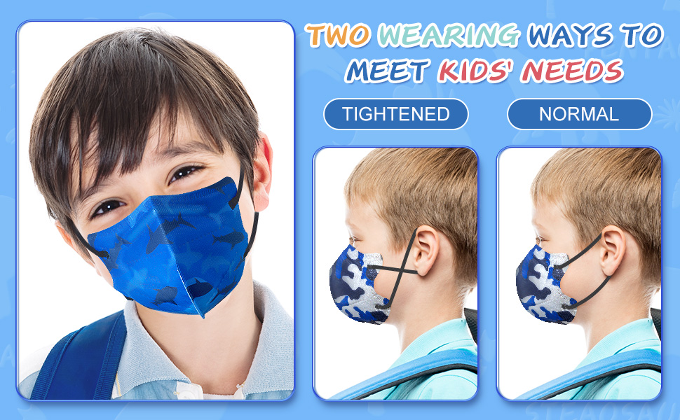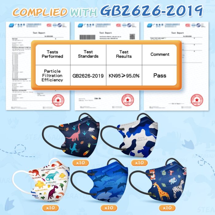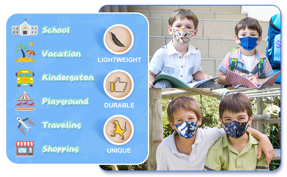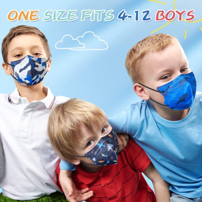 • MULTICOLOR PATTERNS – 50 pcs kids masks disposable kn95 per box, dinosaur, camo, animal, shark, ocean world, different colors and patterns to meet your kids’ daily needs, great for children 4-12 years old for school, kindergarten