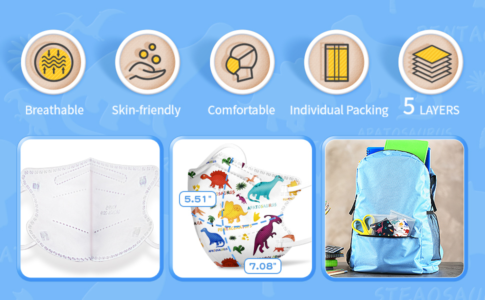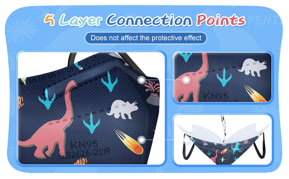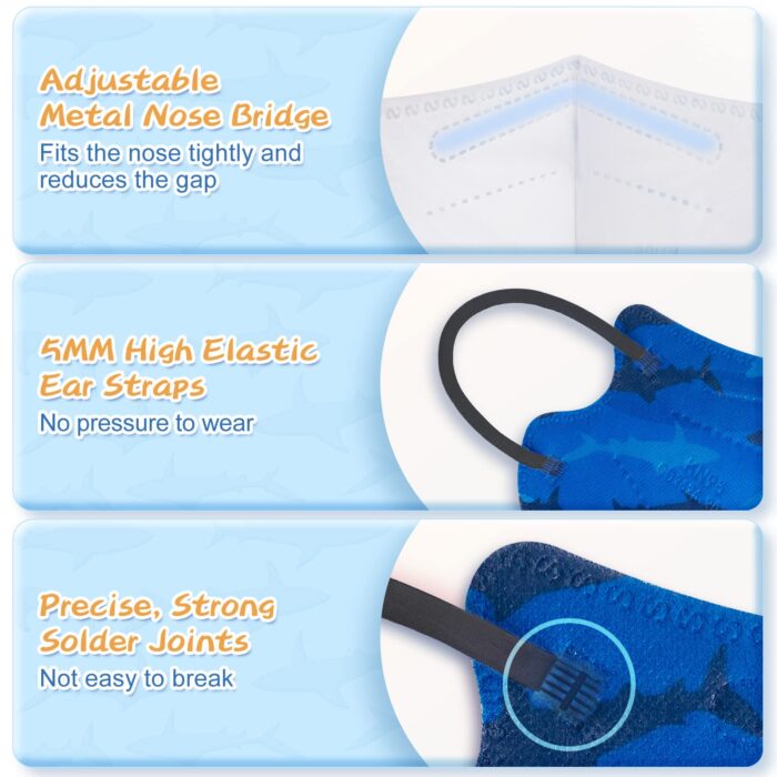 • COMFORTABLE & BREATHABLE – The 5MM widened ear loops are more comfortable to wear, the adjustable nose bridge strips tightly fit the nose, making the kn95 kids face mask not easy to fall off