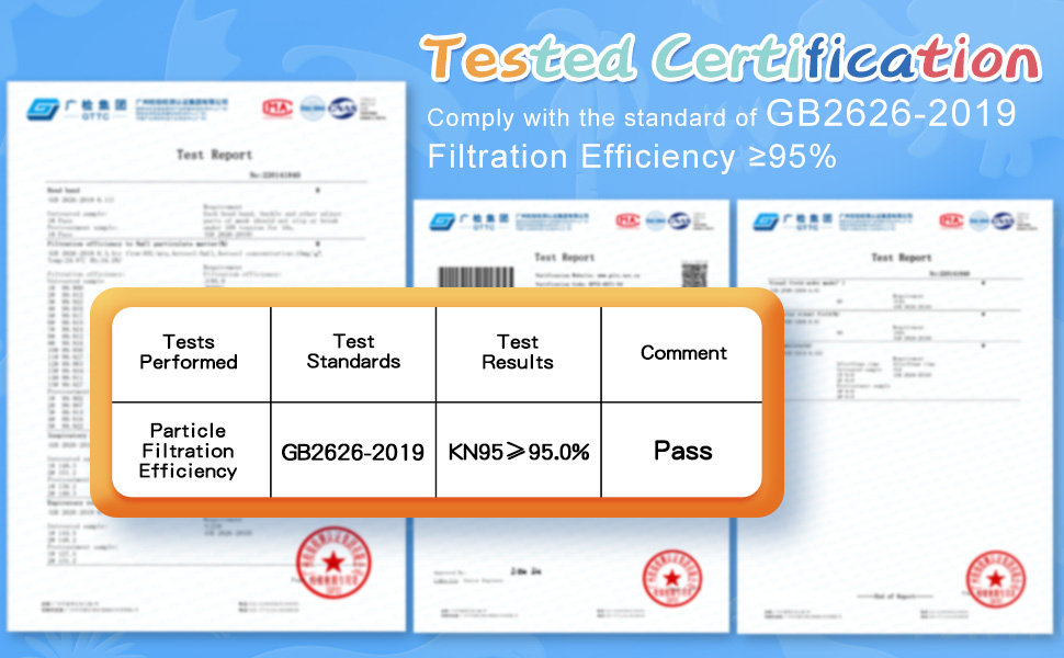 • CERTIFIED QUALITY – This kids kn95 masks for children is made of 2 layers of melt-blown cloth, 1 layer of hot air cotton, and 2 layers of non-woven fabric, comply with GB2626-2019 implementation standard, the filtration efficiency≥95%, it can filter more than 95% of dust, powder, haze, second-hand smoke, etc. in the air
