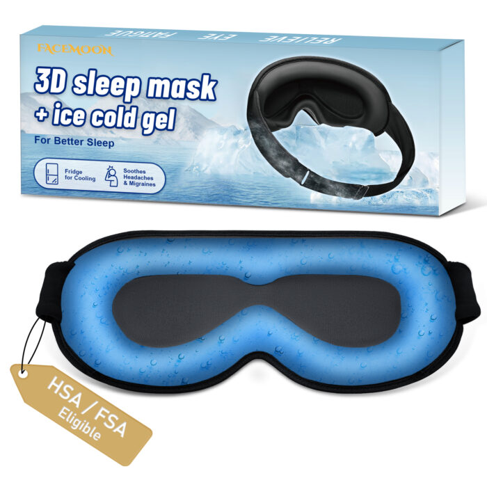 FACEMOON 3D Gel Cooling Eye Mask for Sleeping, 100% Blackout Sleep Mask for Men and Women, Weighted Eye Covers