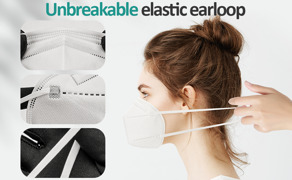 • Comfortable 3D Design: KN95 face masks are designed according to the adult face shape to to offer full coverage of the nose mouth and chin and enough space to breathe freely. With high elastic ear loops and adjustable nose clip for comfortable fit