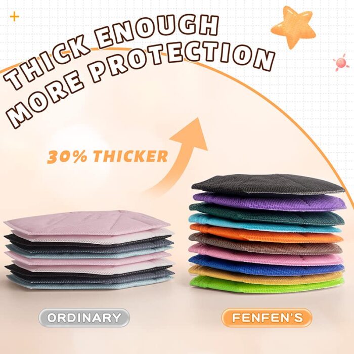 • 10 COLOR PER BOX – The multicolor unisex kids KN95 mask is for both boys and girls. It can be used indoor, school, kindergarten or other public place, different color mask to match your kid’s daily dress