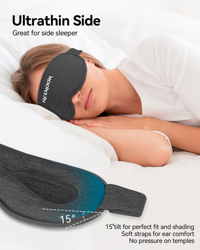 - 【For Any Sleeping Position】The edges of eye masks for sleep are all made of our hand-stitched for durability. The ultra-thin material on the sides of the sleep masks for women minimizes pressure on the temples, and the 15°tilt angle design completely blocks out light when lying on your side.