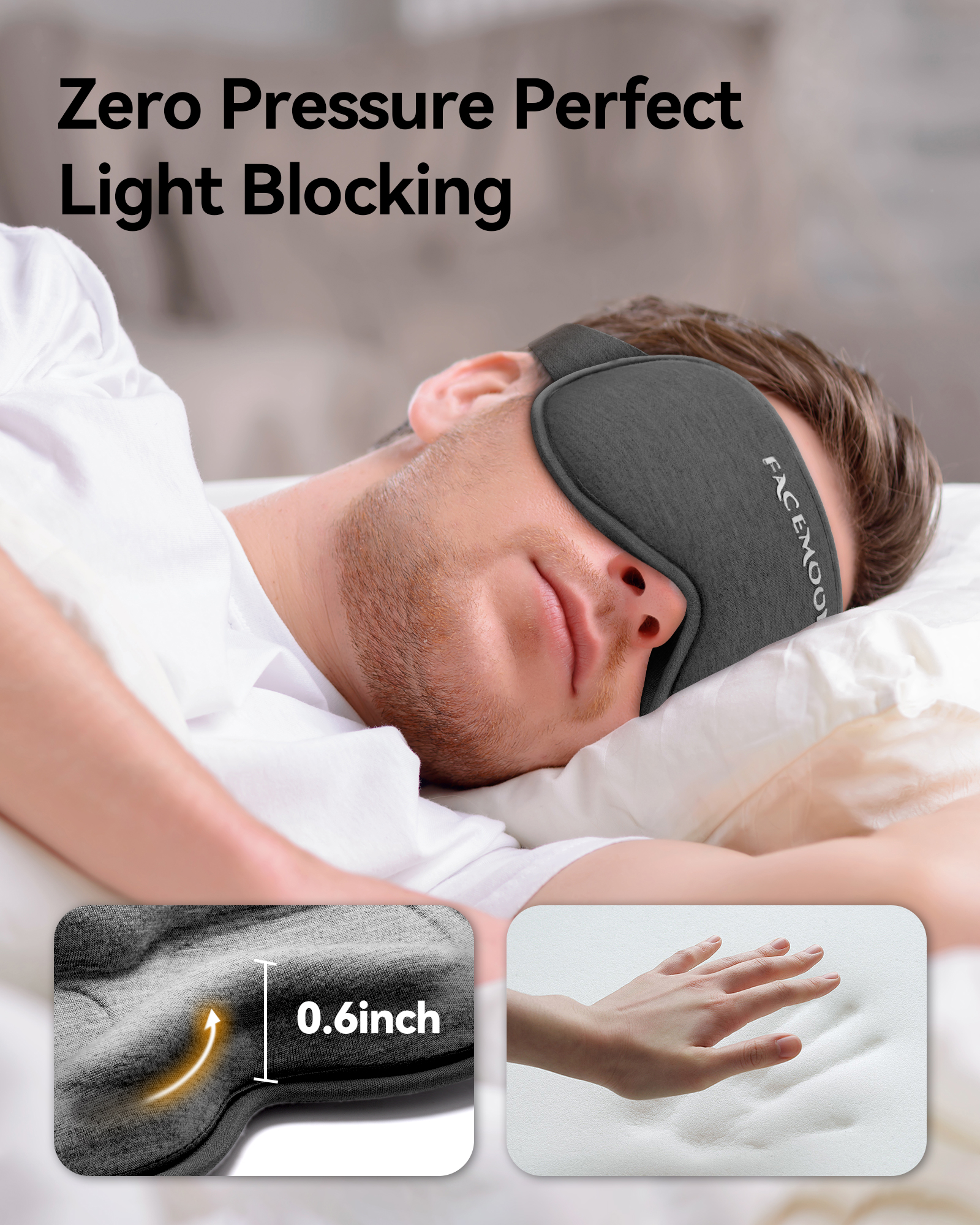 • 【Low-Rebound Memory Foam】Sleep mask blackout is made of selected high-density slow-rebound memory foam, providing ultimate comfort and breathability, and the lightweight fabric of sleeping eye mask will never stain bed sheets or pillows.